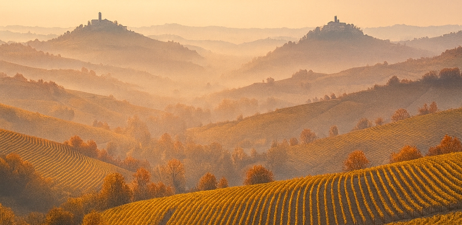 Piemonte patří k nejprestižnějším vinařským regionům Itálie, proslulý kombinací tradičního vinařství a unikátního terroiru. Leží na severozápadě země a díky Alpám a Apeninám nabízí výrazné teplotní rozdíly mezi dnem a nocí, které dodávají vínům eleganci a komplexitu. Dominantní odrůdou je Nebbiolo – základ Barola a Barbaresca – doplněné o Barbero a Dolcetto pro červená vína a Arneis, Cortese či Moscato Bianco pro bílá. Piemonte je známé rovněž šumivými víny Alta Langa a sladkým Moscato d’Asti. Region staví na dlouhé historii, precizním řemesle a produkuje vína s mimořádným potenciálem zrání. |